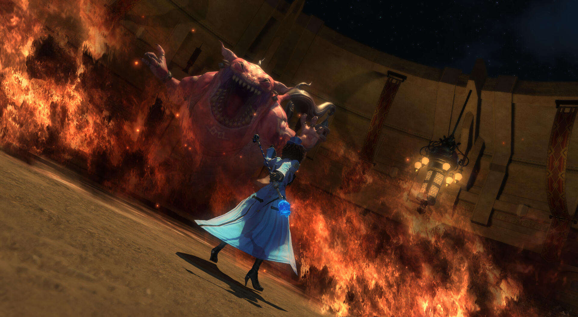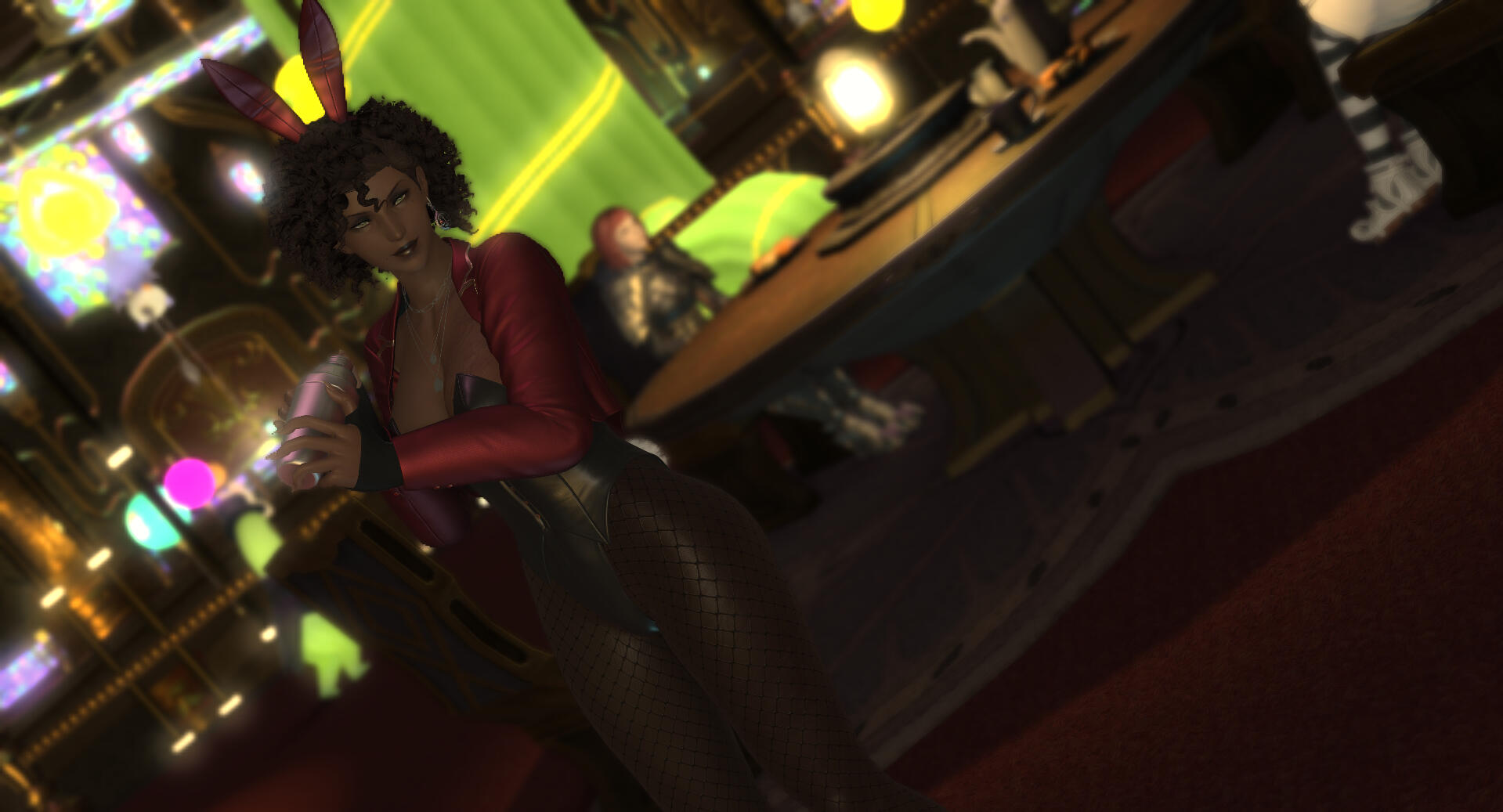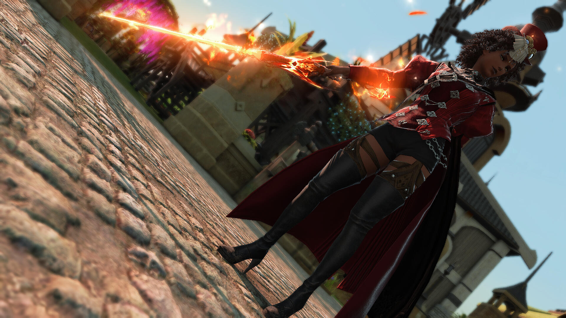 Known more by her stage name of the feiry Lady Bombarda, Cyriette is a well practiced blue mage and hero of the Blue Carnival. Other blue mages or even those who play villians in the area are open to recognizing her and planning possible fights. Others native to Ul'dah and familiar with the carnival may recognize her stage name and look.